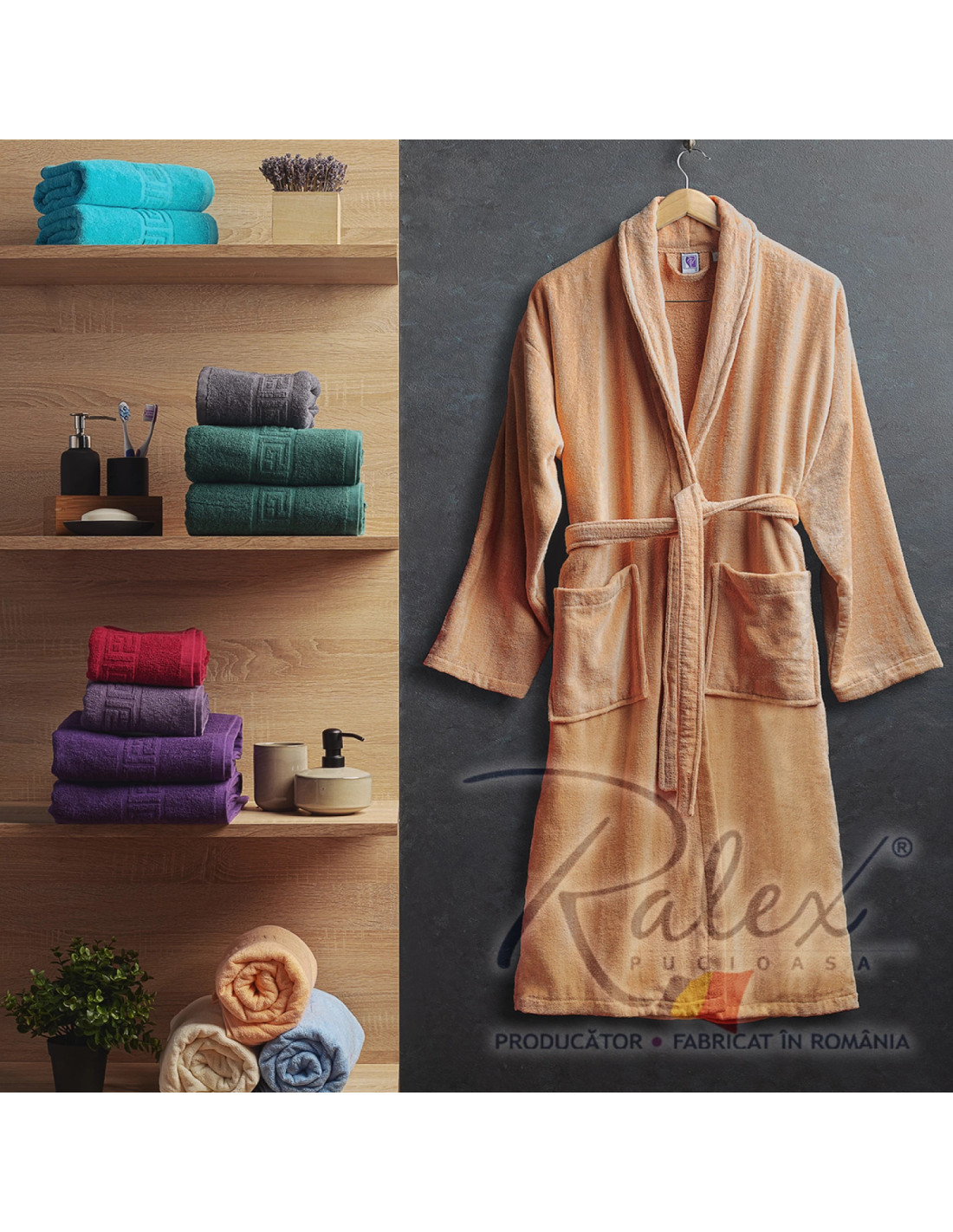 Halat de baie confectionat din bumbac 100%, cu o consistenta generoasa de 420gr./mp, special creat pentru a va aduce confortul mult dorit dupa fiecare baie.