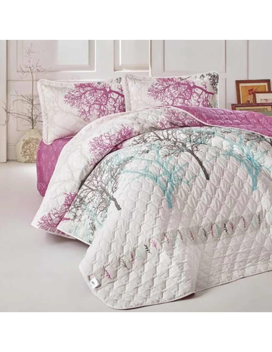 Adu în dormitorul tau frumusetea  cu acest minunat set de cuvertura de pat, fabricat din bumbac 100%, matlasata pe toata suprafata. Disponibil în nuante vesele, conceput pentru a se potrivi cu cele mai multe interioare, acest set elegant din 3 piese se poate adapta la stilul contemporan si elegant al dormitorului tau.
